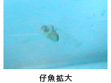 受精卵は水面近くに浮く分離浮性卵で、それを回収して水槽の中に入れ生産を始めます。 1〜2日でふ化し、約2〜3mmの仔魚になります。 その後3日程で餌であるシオミズツボワムシ(通称=ワムシ)をたくさん食べるようになります。 餌を切らさず与え、飼育環境(特に海水の温度)魚病対策などにも充分気を配り、大切に育てます。 全長50〜70mmの稚魚になるまで約60日間かかります。